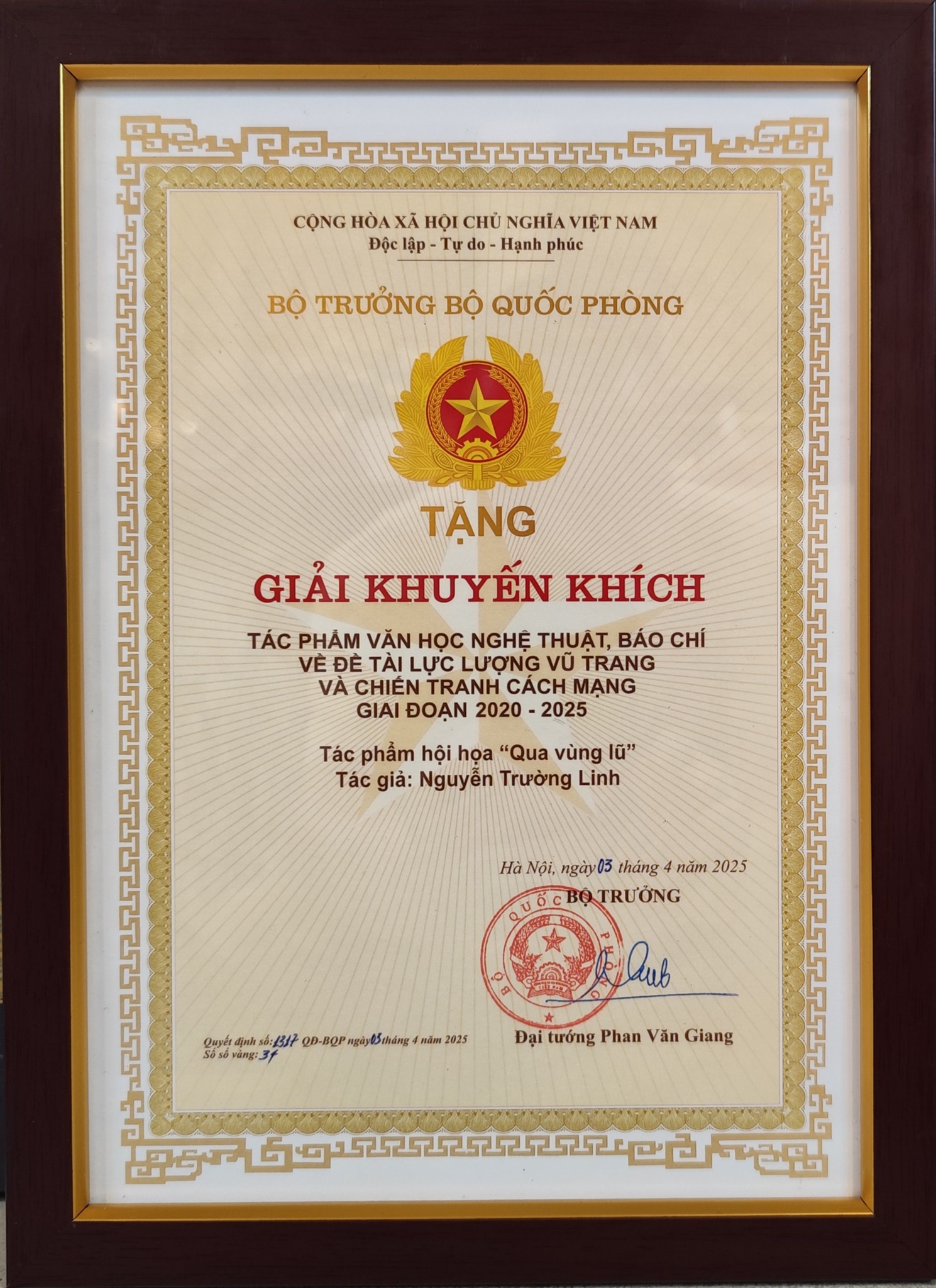 Giải thưởng của Bộ quốc phòng Đề tài Lực lượng vũ trang và Chiến tranh cách mạng